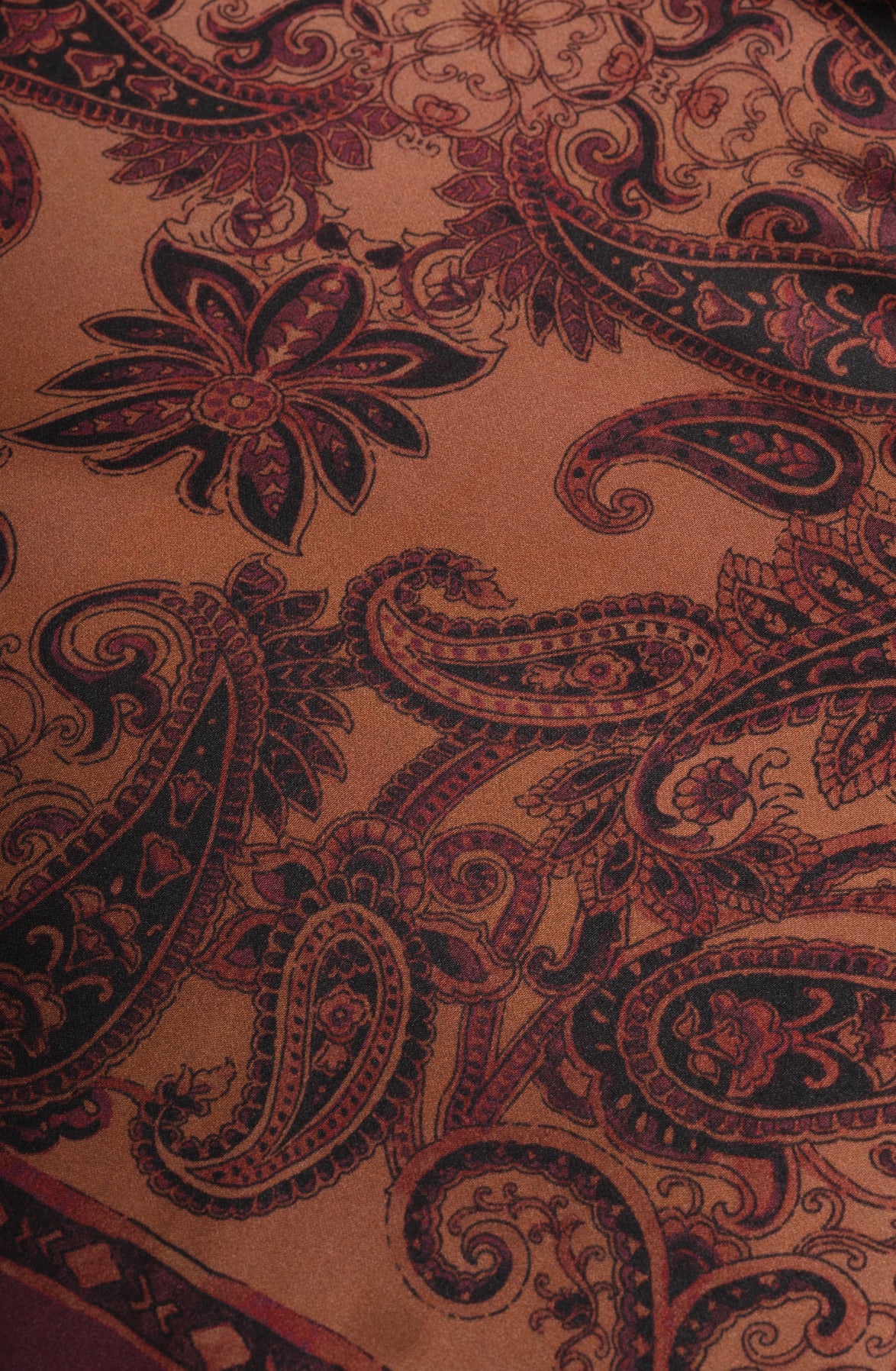 De rijke paisleyprint in diepe bordeaux- en warme bruintinten voegt een vleugje elegantie toe aan deze statement piece. De jas is voorzien van een ritssluiting, twee paspelzakken en wijdere ballonmouwen voor een modieuze, comfortabele pasvorm.